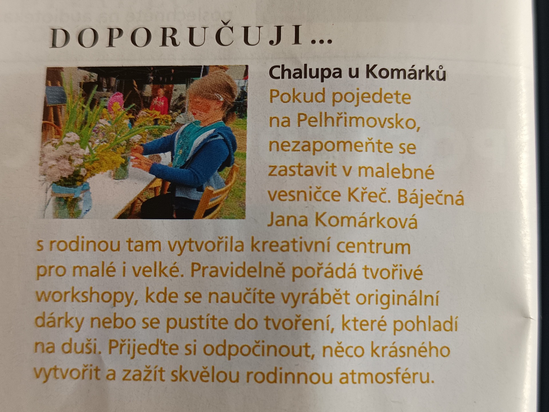 V časopise Žena a život, číslo 22/2025 naši Chalupu u Komárků doporučila paní Jana Ondříčková. Děkujeme :-)