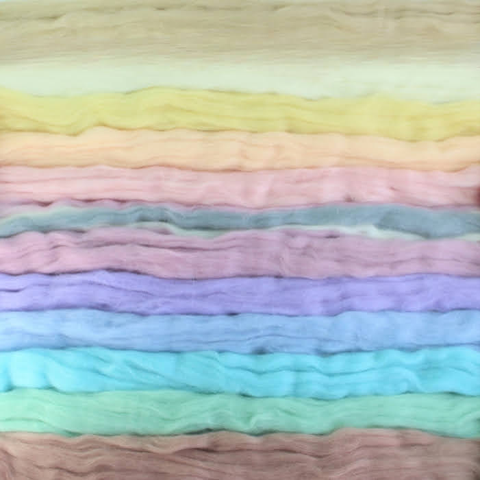 Evropské ovčí rouno 25-28 mic vynikající zejména na suché plstění jehlou, nicméně dobře zaplsťuje i mokrým plstěním. Od každé barvy pruh dlouhý 40 cm, celkem tedy 4,8 metru ovčí vlny k nejrůznějším kreativním technikám. Hmotnost: 120 g